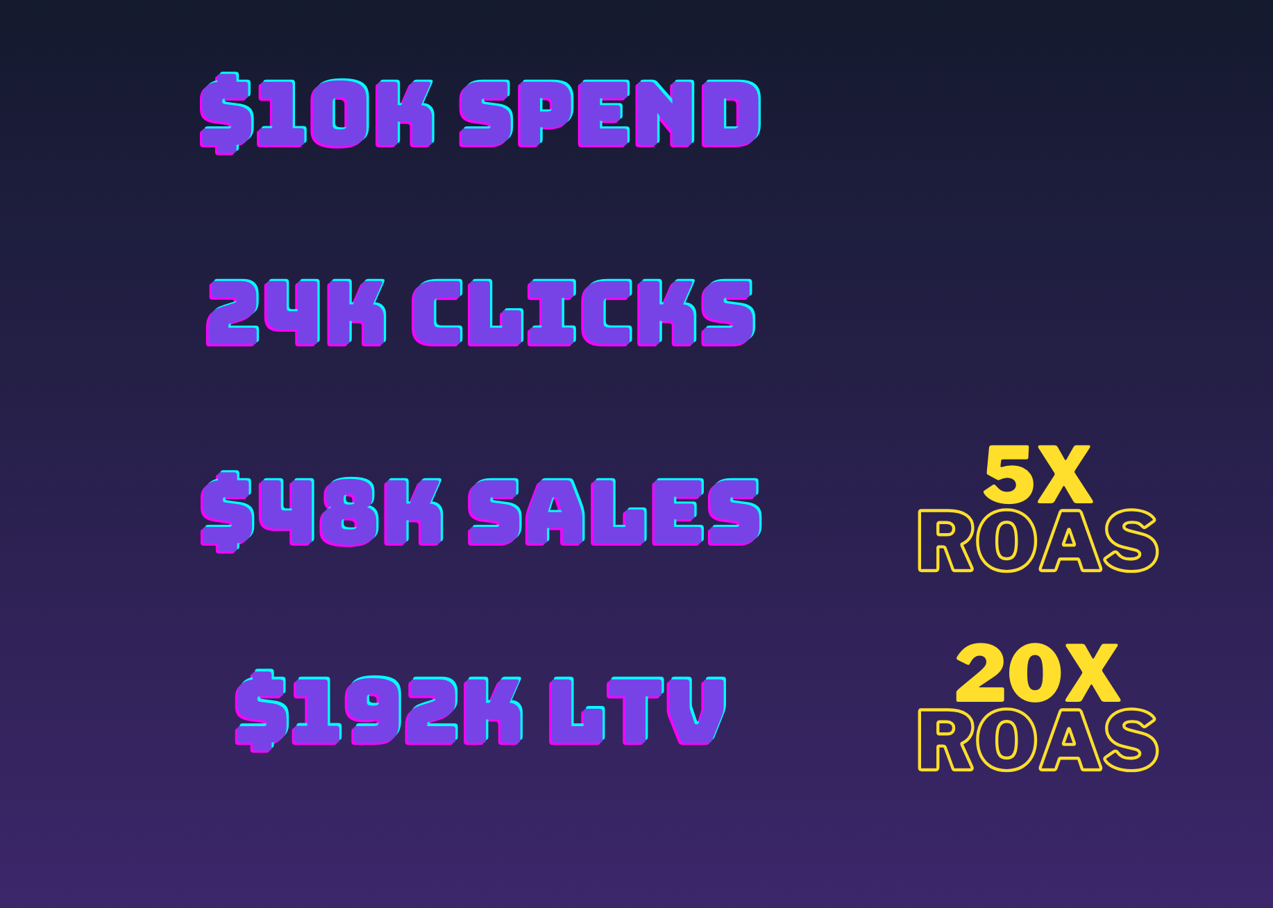 Here's the upshot: you invest $9,600 and, based on these metrics, could see an initial return of $48,000 with a long-term potential of $192,000. That's a 5x ROAS in the short term and up to 20x considering the LTV. All with a strong CPA of $20.